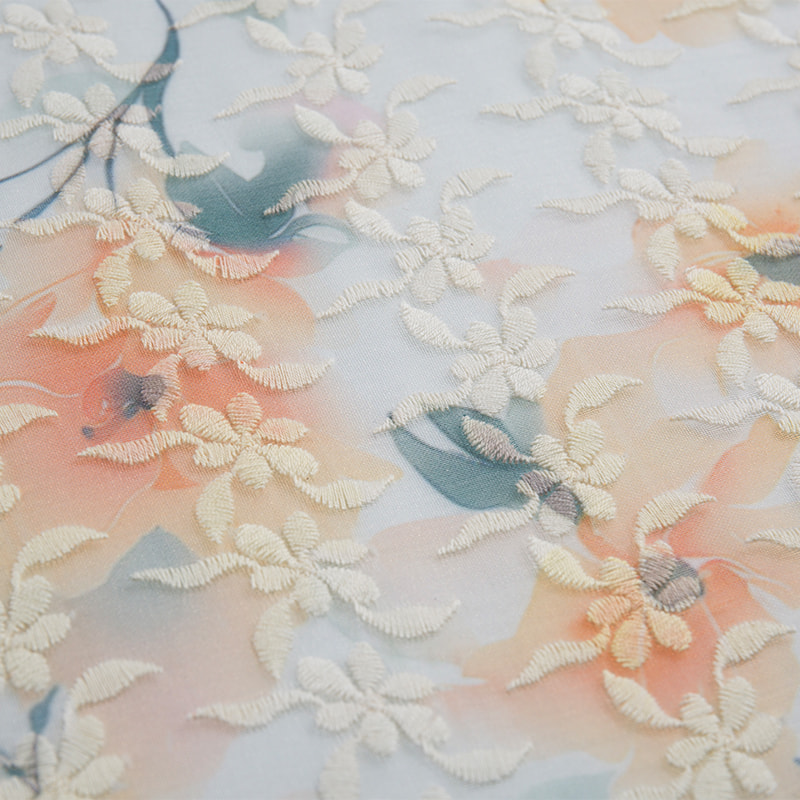 El tejido bordado de poliéster transpirable, resistente a la solidez del color y floral 3D, fabricado con fibras de poliéster de alta calidad y combinado con tecnología de bordado avanzada, presenta un fuerte patrón floral tridimensional en su superficie, lo que da como resultado un diseño exquisito y artístico. Su mayor característica es su excelente solidez del color; incluso después de un uso prolongado, los colores permanecen vibrantes y frescos. La transpirabilidad del tejido regula eficazmente la temperatura durante el uso, manteniendo la comodidad.